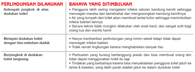 Tanya: Saya tidak terbiasa untuk duduk di toilet umum walaupun saya telah membersihkannya
